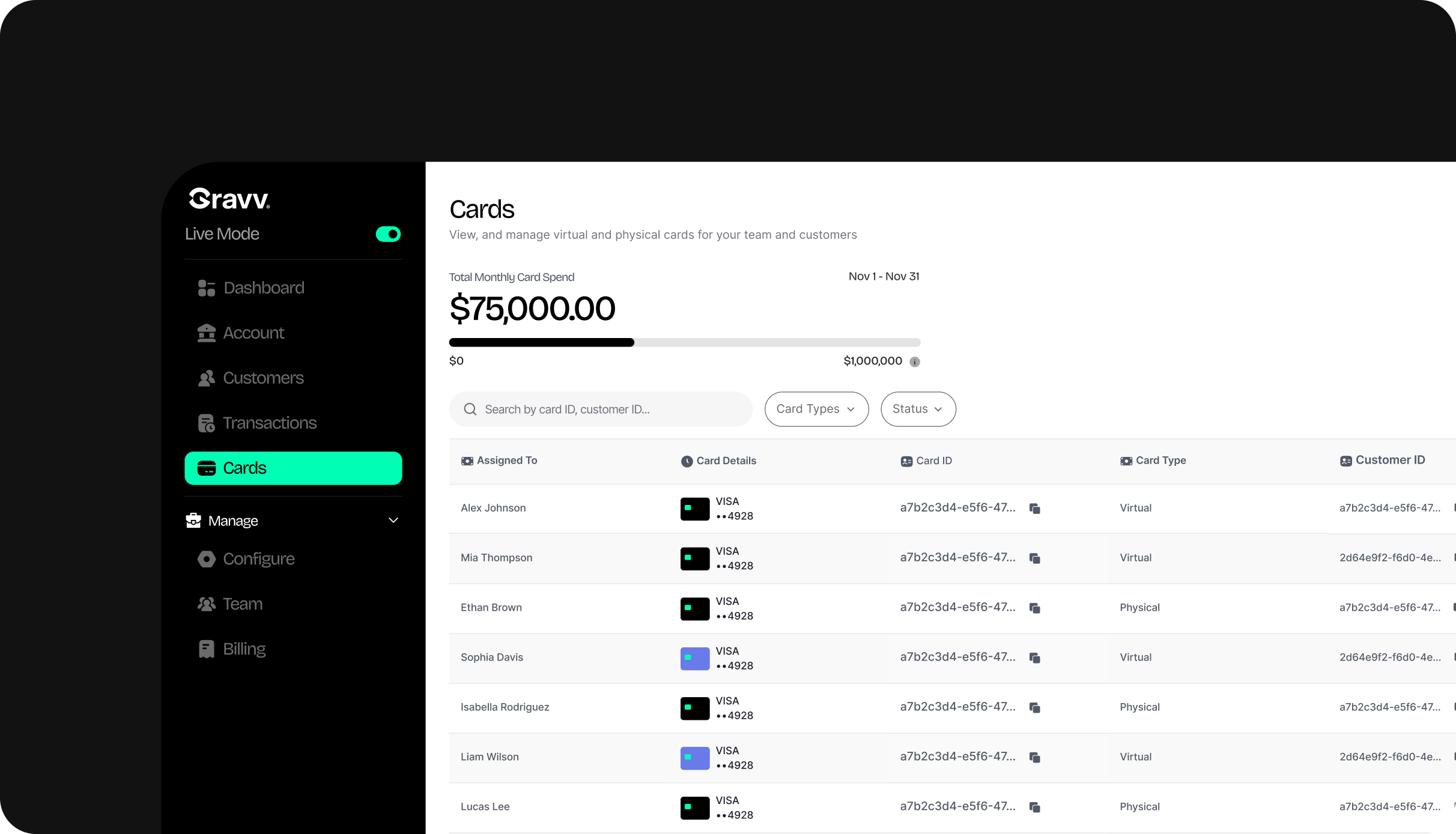 A single card account serves as the underlying balance for every customer card.